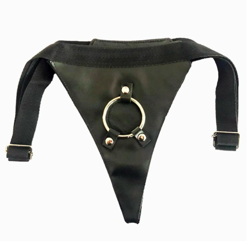 Arnés hecho de Nylon + Metal + Cuero sintético con anillo para acomodar dildos con base compatibles con arnés, con correas que se sujetan de la cadera tipo cinto.